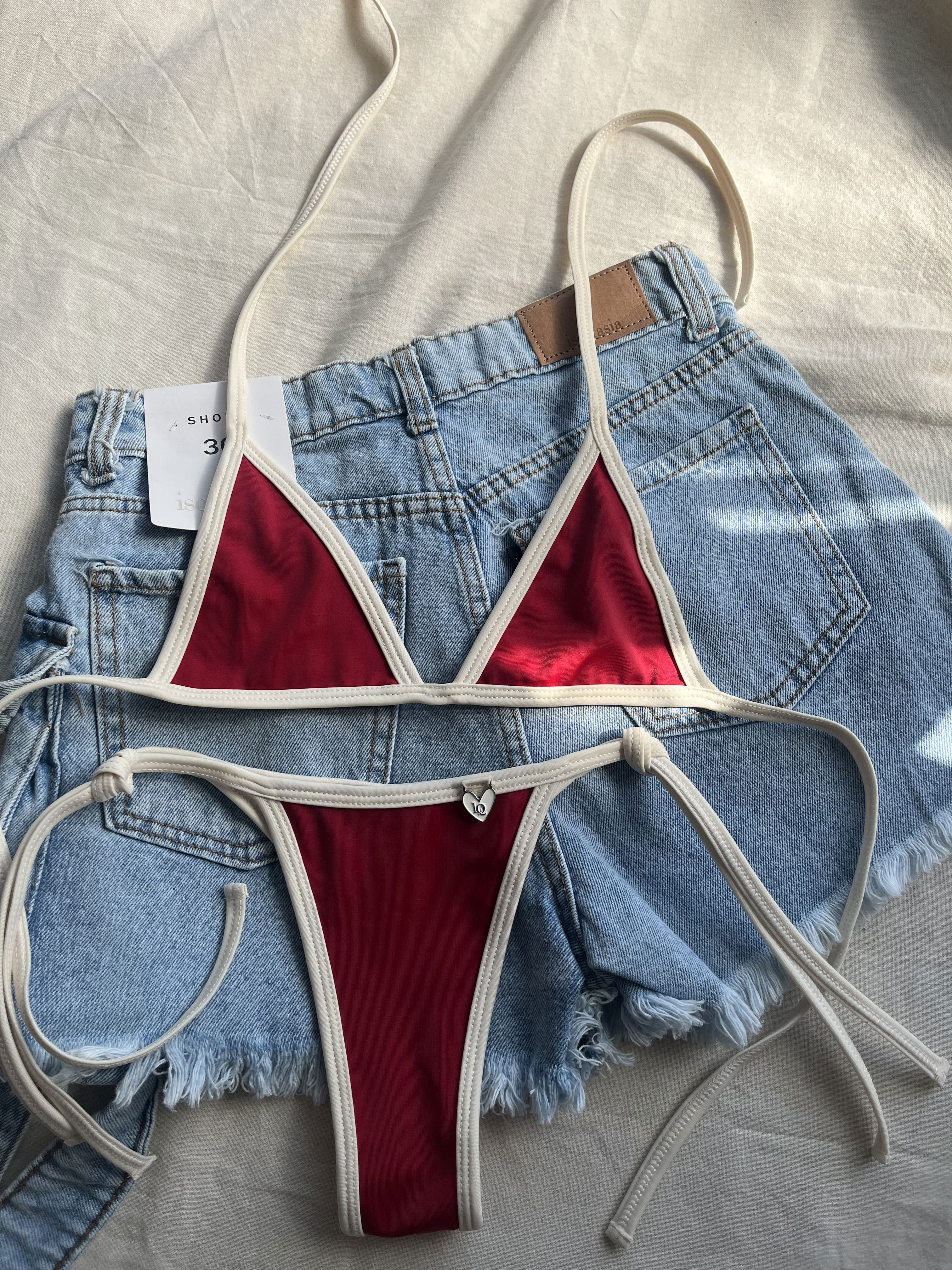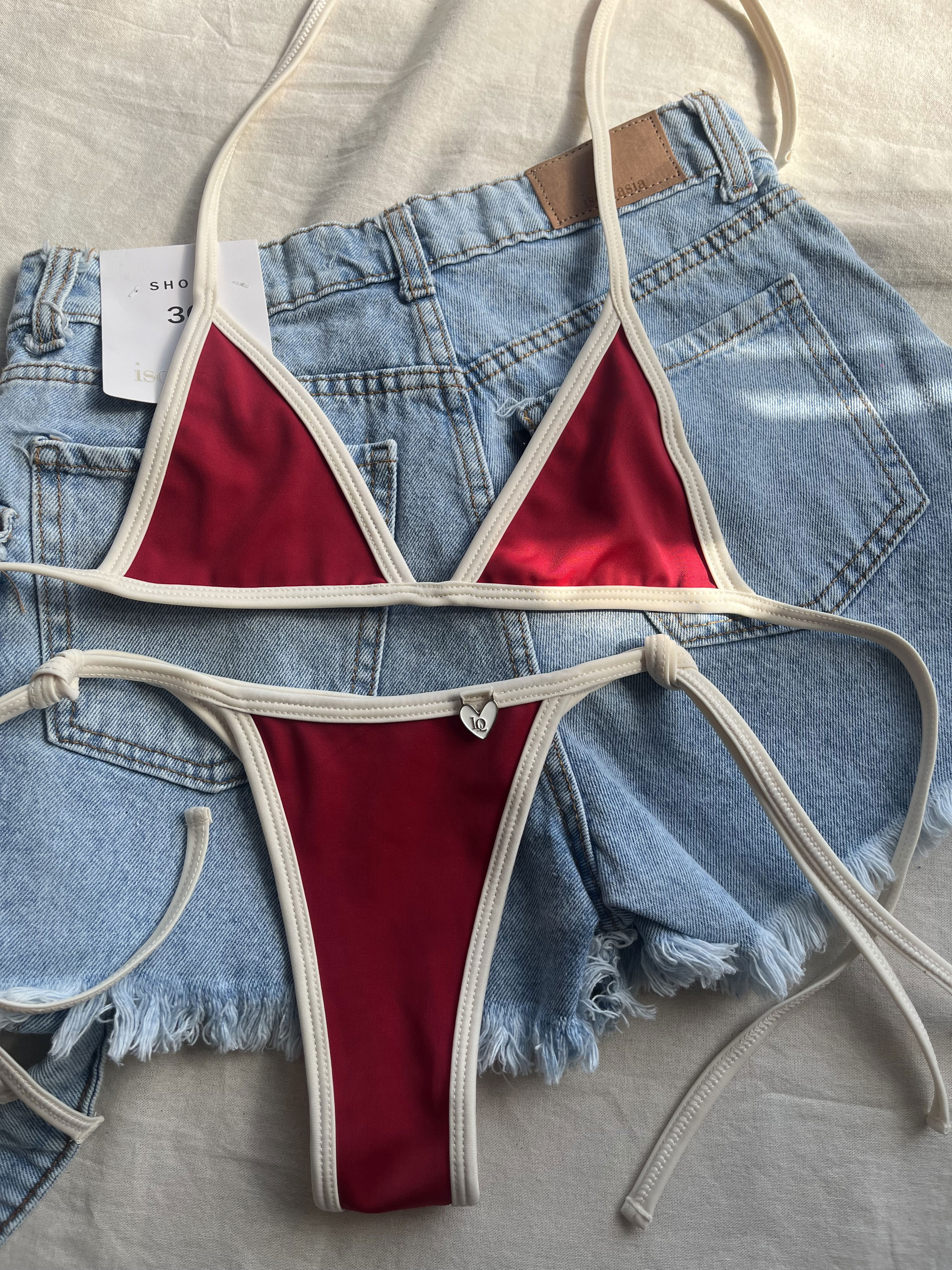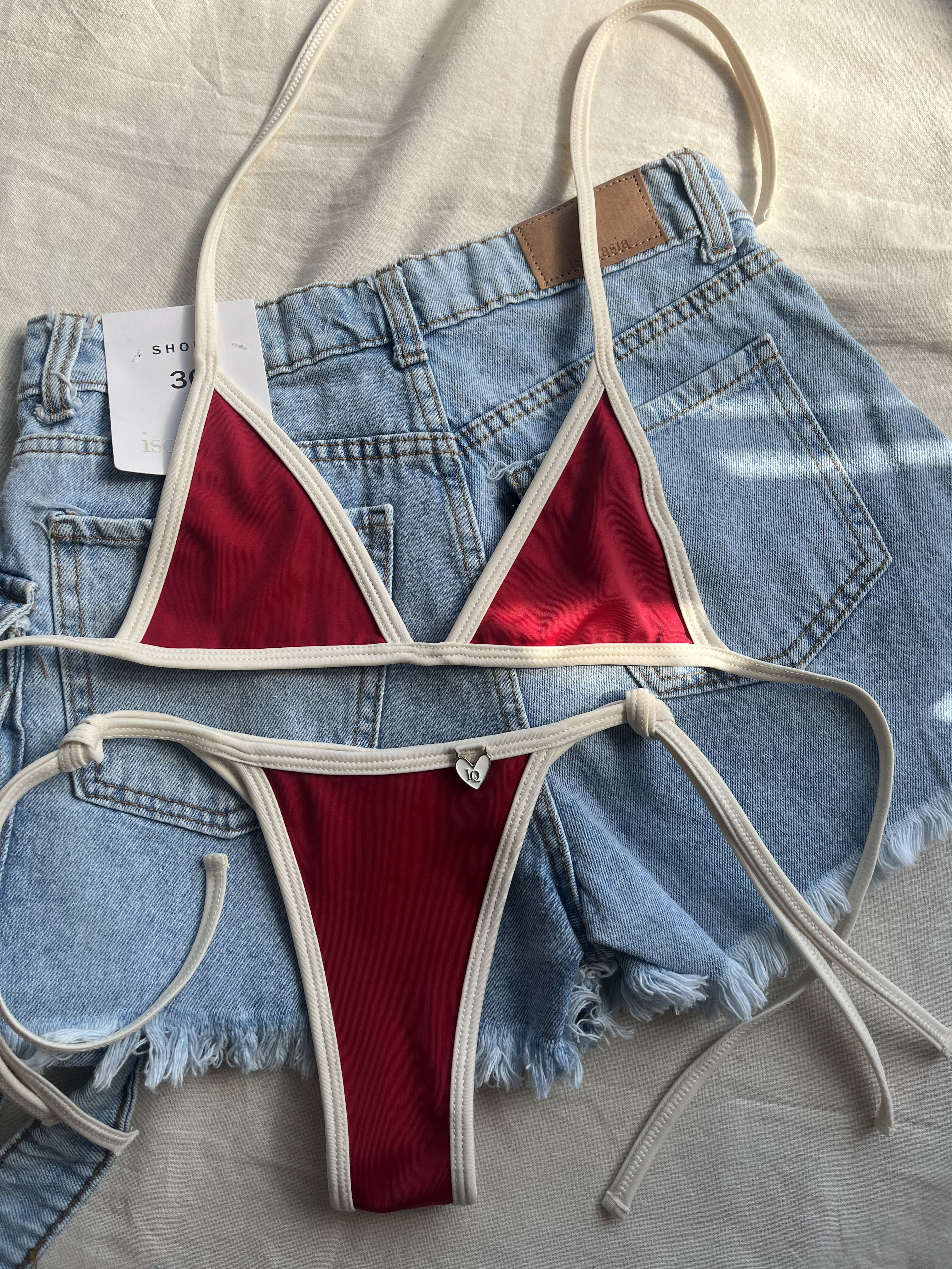 Triángulo fijo del estilo "micro bikini" y colaless con tiras para para atar.