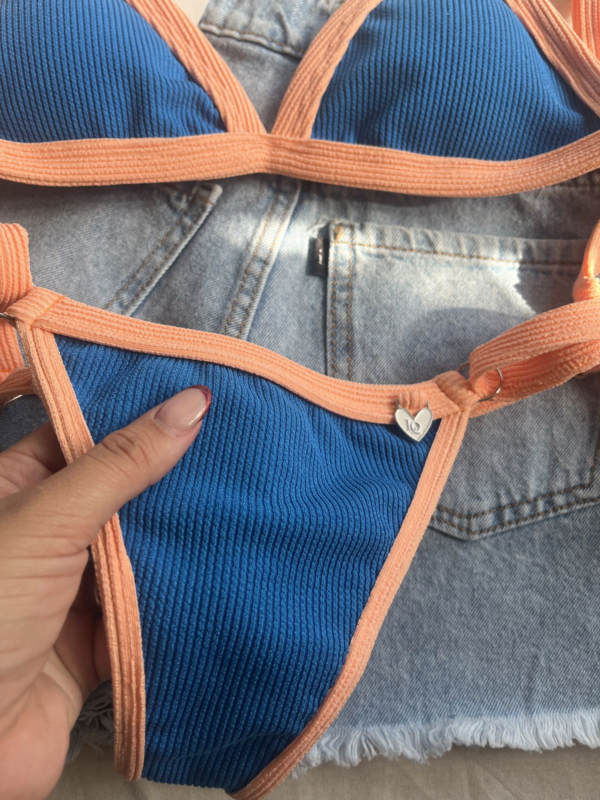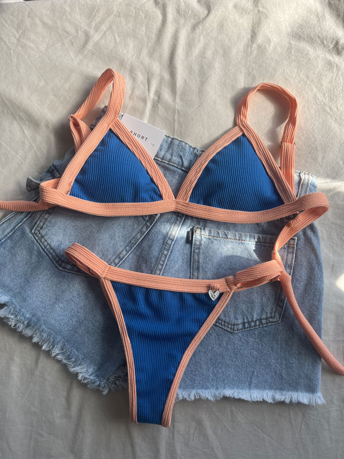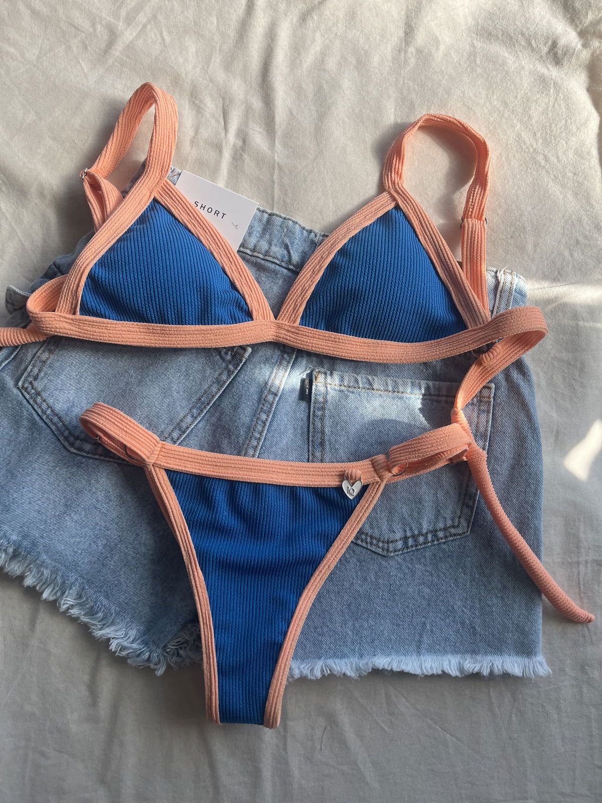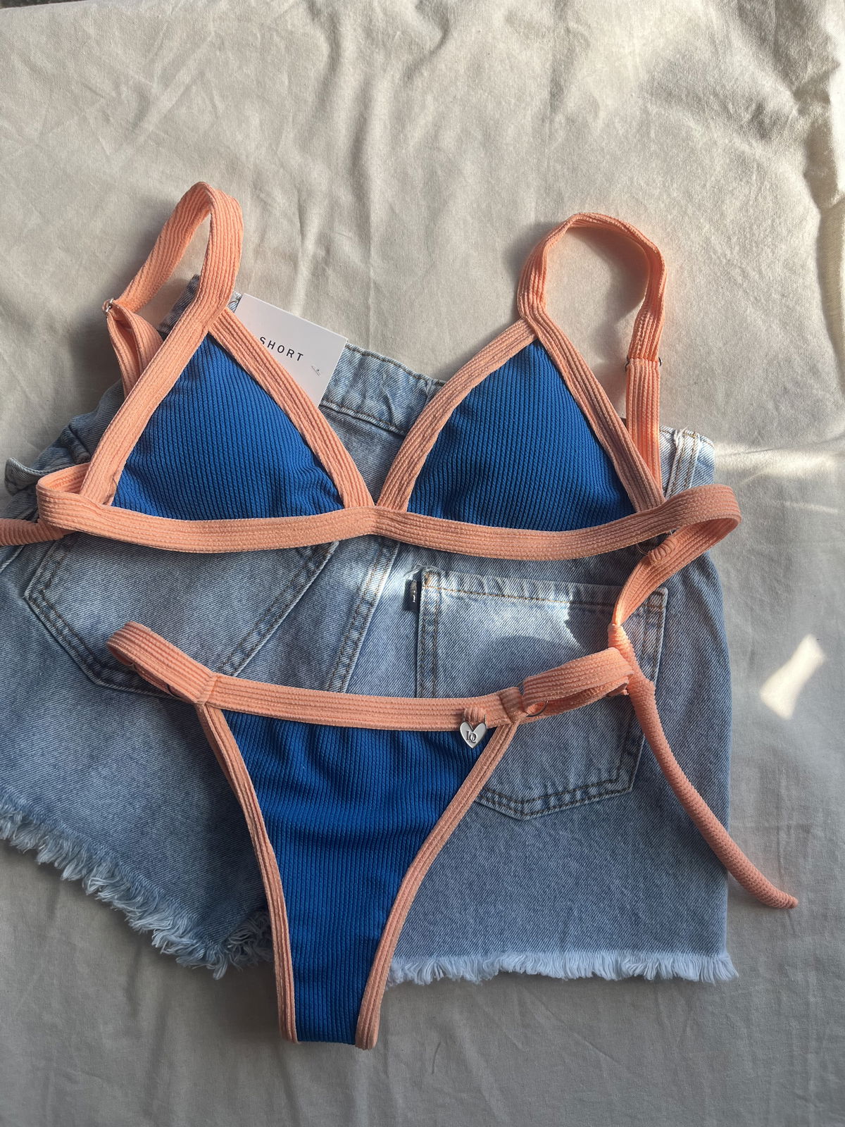Triángulo texturado. Corpiño con breteles regulables y espalda para atar. Colaless regulable