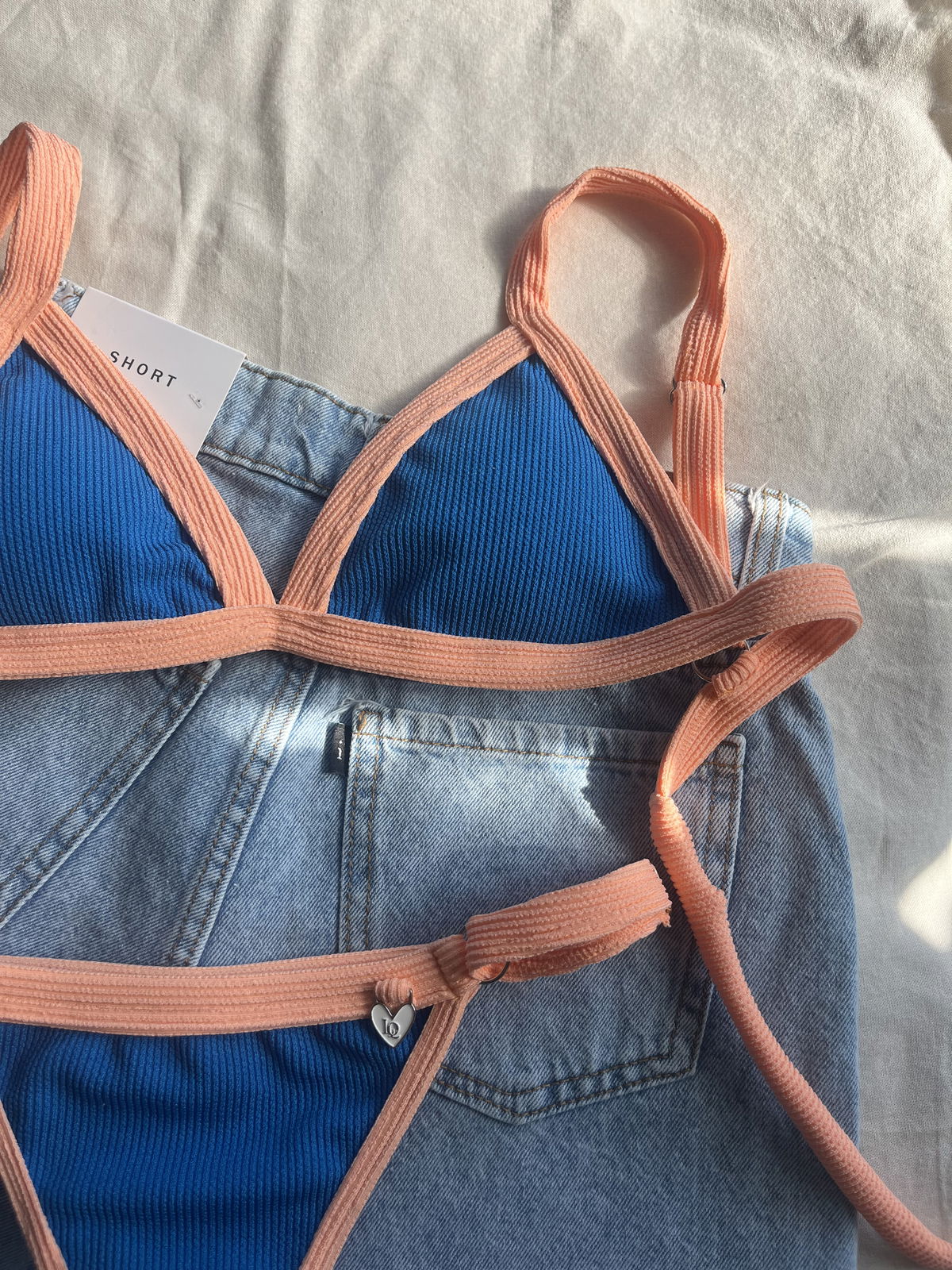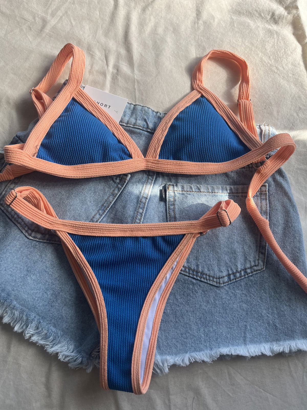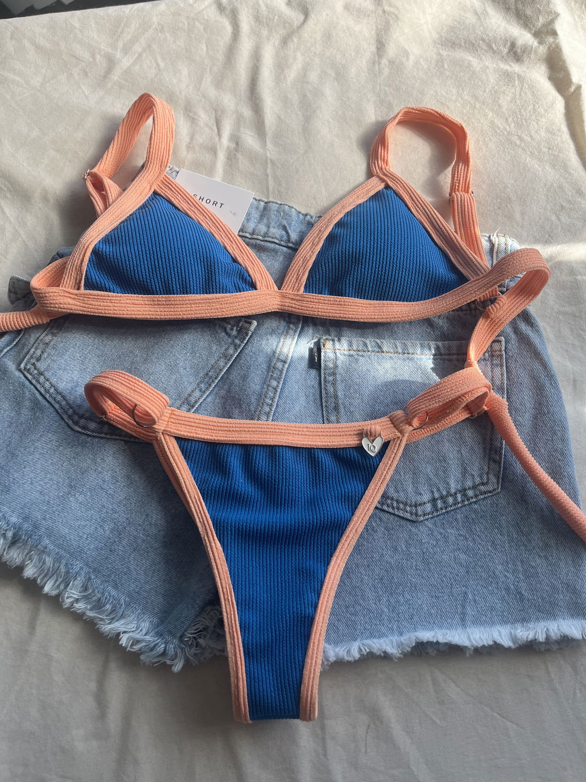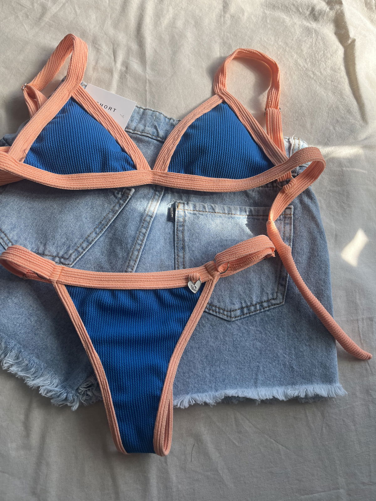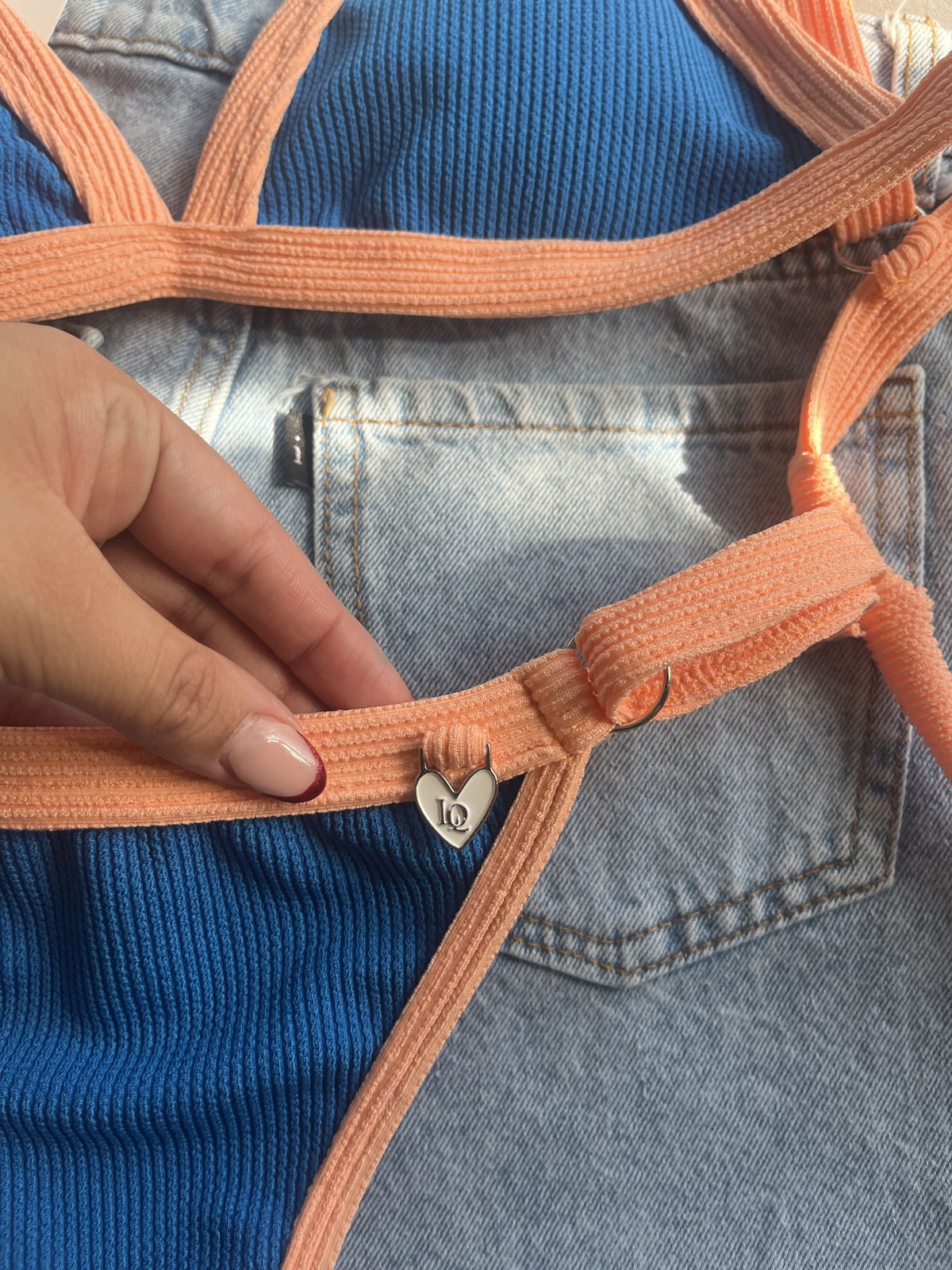 Triángulo texturado. Corpiño con breteles regulables y espalda para atar. Colaless regulable