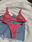 Triángulo lycra tricot estampado. Corpiño con breteles regulables y espalda para atar. Colaless regulable