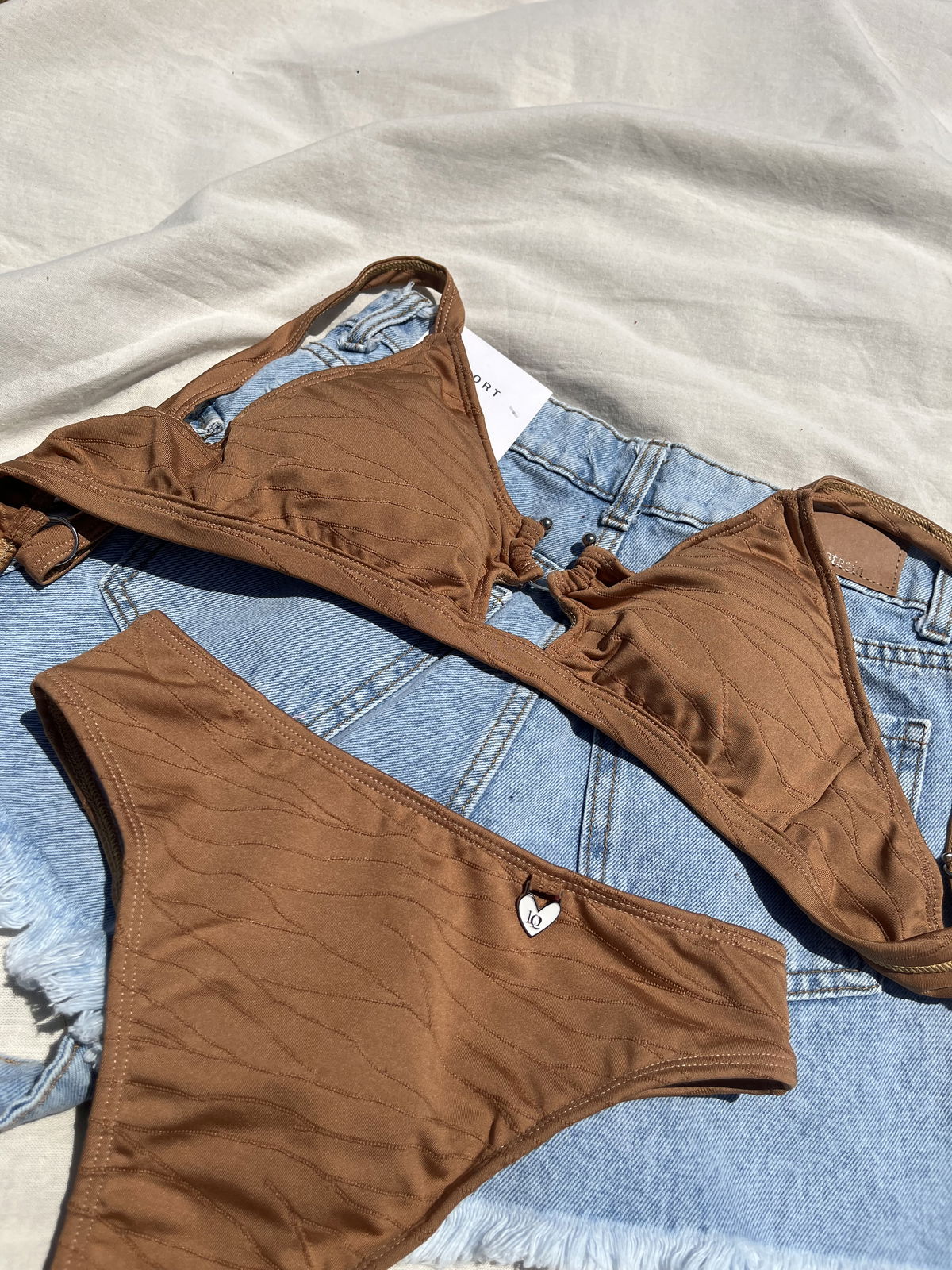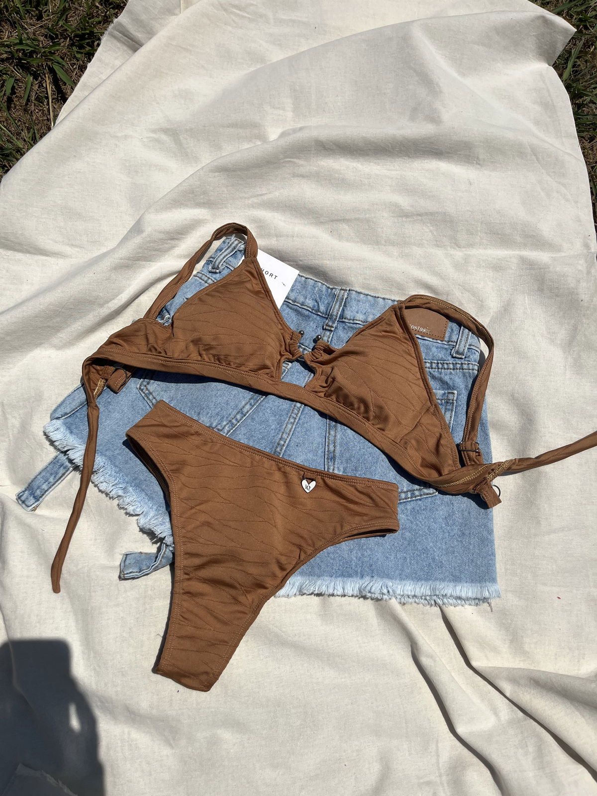 Top con herraje, breteles regulables y espalda para atar. Colaless tiro alto