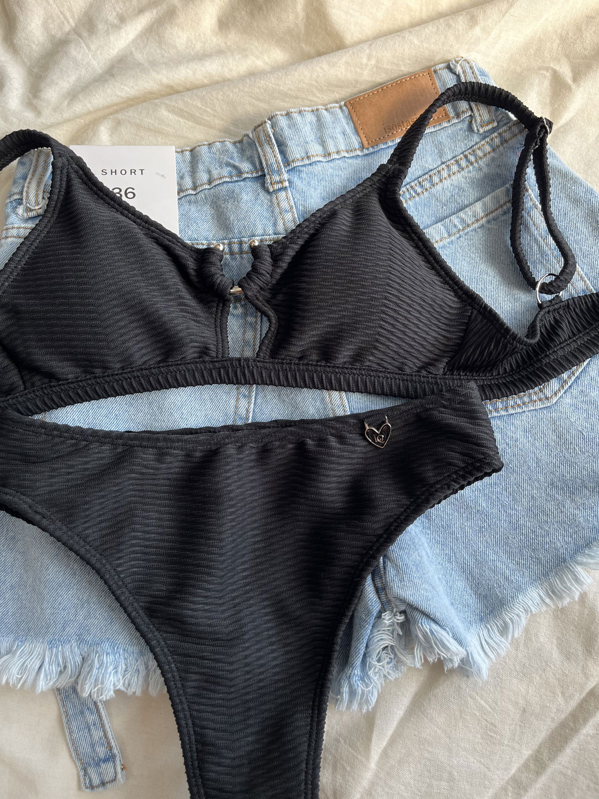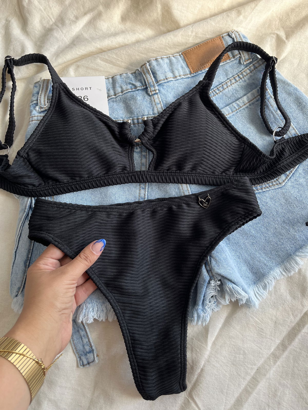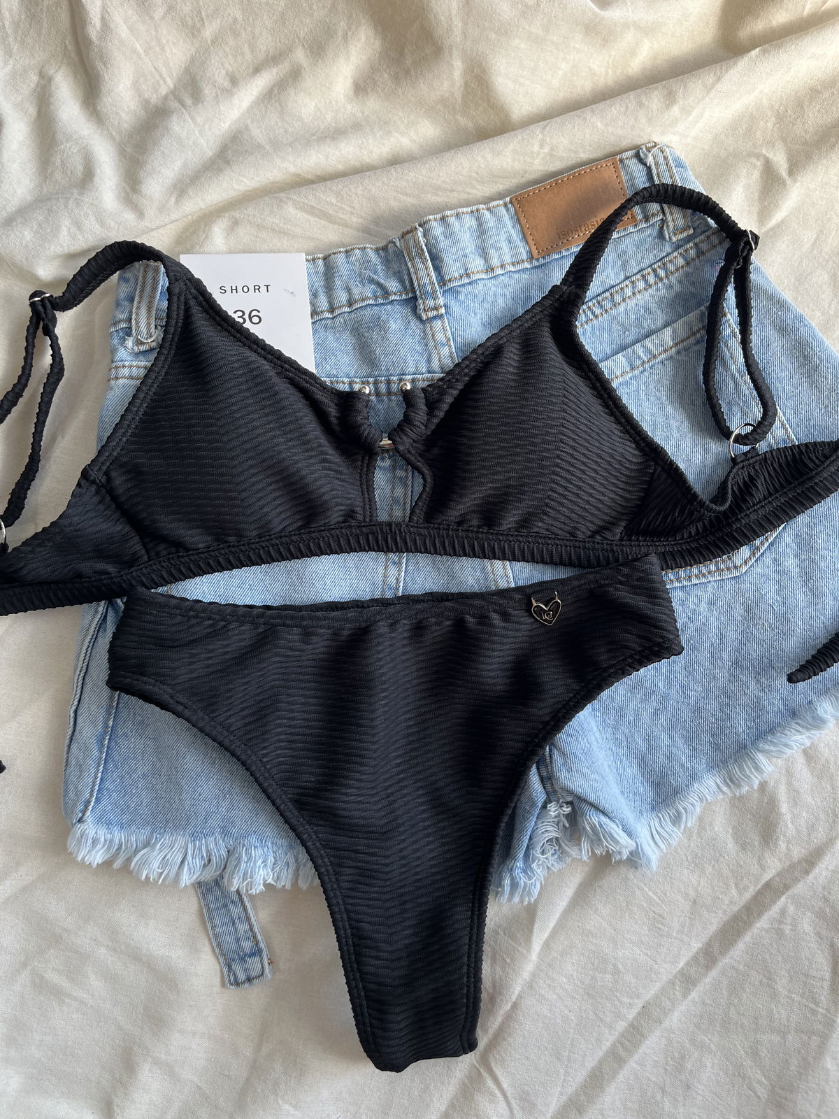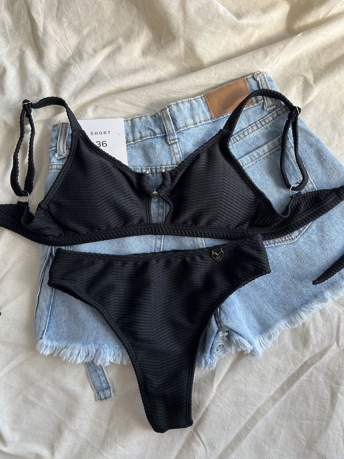 Top con herraje, breteles regulables y espalda para atar. Colaless tiro alto