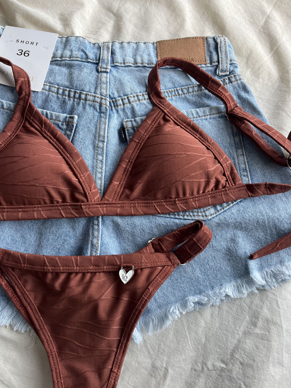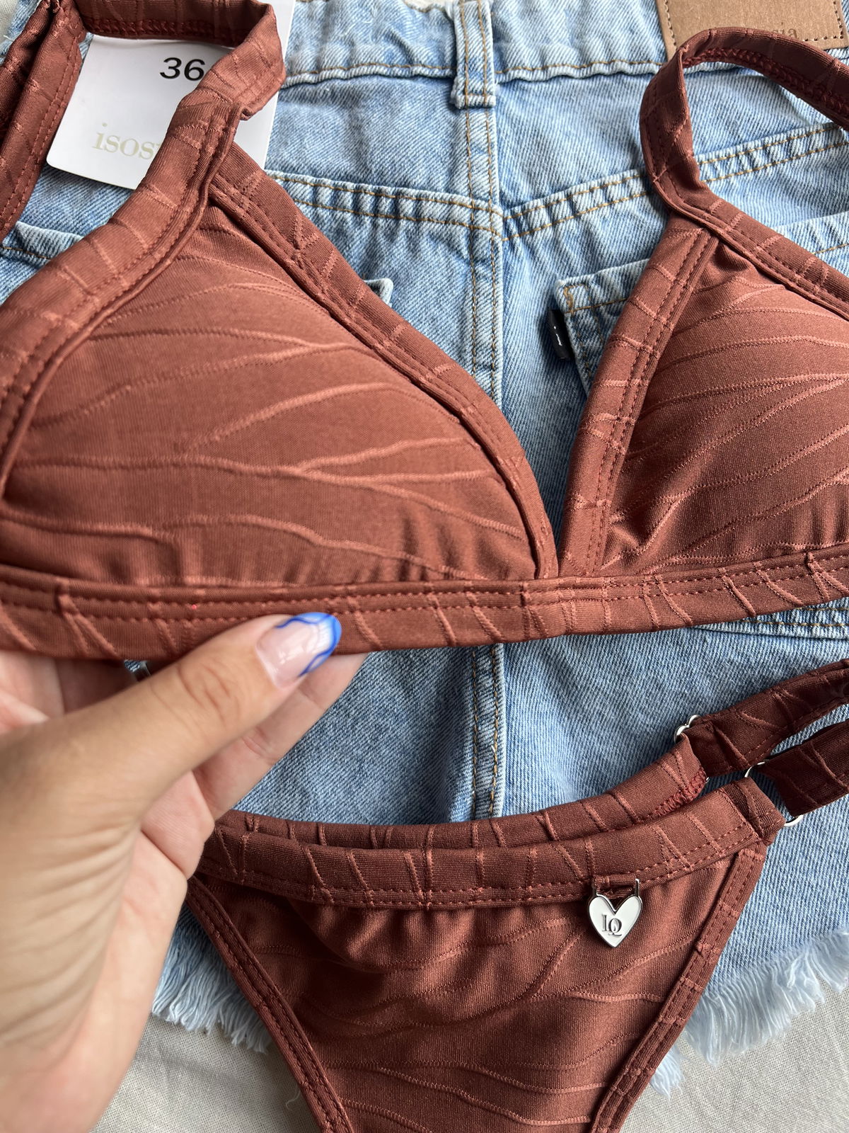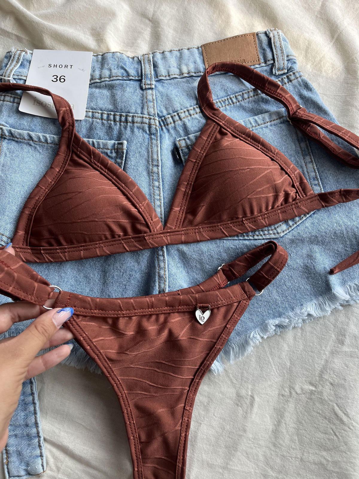 Triángulo texturado. Corpiño con breteles regulables y espalda para atar. Colaless regulable